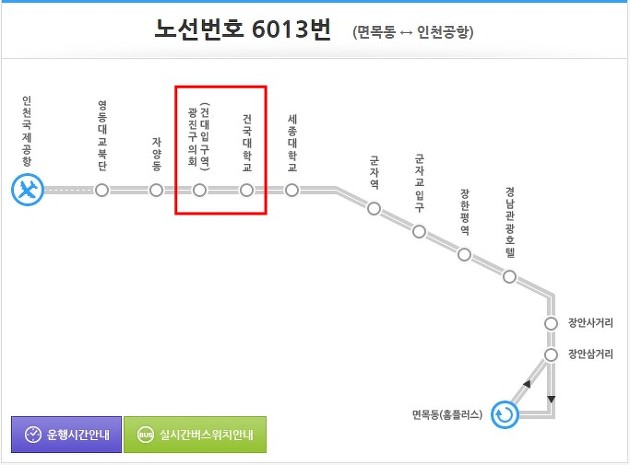 건대 공항버스 6013 시간표 및 탑승위치는 어떻게 될까요?