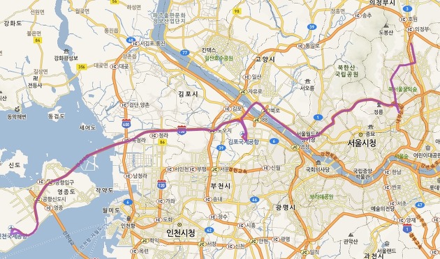 전체 노선을 지도상에서 놓고보면 상단과 같은데 정릉 정류장을 끝으로 내부순환로로 올라간 후 올림픽대로를 이용해 김포공항에 도착하고 다시 인천공항고속도로를 타고 인천공항으로 가기 때문에 이용시간에 따라 정체를 감안하여 미리 서두르는게 좋습니다.