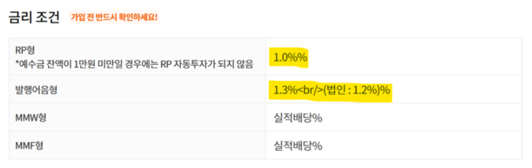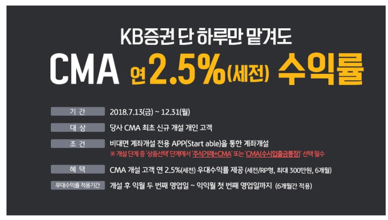 cma는 금융사를 통해서만 가입할 수 있으며 일반 은행보다 금리가 높고 하루만 예치하더라도 이자가 붙기 때문에 많은 분들이 이용하고 있다. 국민은행 cma통장도 사실은 kb증권을 통해서 만드는 것이며 kb의 경우 워낙 인지도가 높은 곳이니 걱정하실 필요는 없을 것이다.