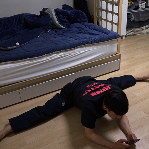 나태주(1990년생 나이 31세)는 '세상에 이런 일이'에 나올 법한 충격적인 물구나무를 서고, 갑자기 목풀기를 하는 등 저 세상 행복 텐션으로 스트레칭 아침 운동을 선보였다.