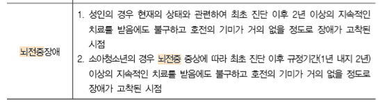 일반적으로 장애진단이라고 하면 발병한지 6개월 이후에 신청가능하다고 알고 계시는데,