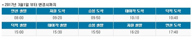 상단은 5월말까지 운항시간을 나타낸 자료인데 평일은 하루 1회, 토요일이나 일요일은 관광객을 고려하여 하루 2회 운항하는 것을 확인할수 있는데 배시간은 승선시기에 따라 달라질수 있으니 이 내용을 확인하고 계신때가 5월 이후라면방아머리 자월도 배시간을 확인하시기 바랍니다.