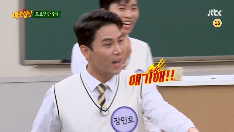 장민호(1977년생 나이 42세)는 파격적인 문제를 출제했다. 장민호의 문제가 끝난 후에도 긴 여운을 남기며 멤버들의 애드리브에 계속해서 언급되었다.