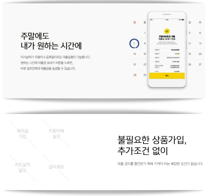 일반 대출을 받으실 때 늘 해왔던 추가 상품 가입이 전혀 없다. 적금 가입, 카드 개설, 급여계좌 자동이체 설정 등 은행에게 유리한 상품을 모두 가입했던 기억이 있다.