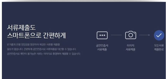 일반 은행에서 대출받을 때의 서류들이 대폭 감소되었는데 스마트폰에서 공인인증서 로그인 후에 제출하시면 된다.