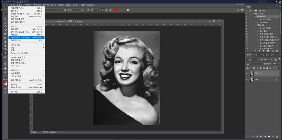 다른 이름으로 저장하시라는 이유는 혹시라도 다시 봣는데 마음에 안드실수 있기 때문에