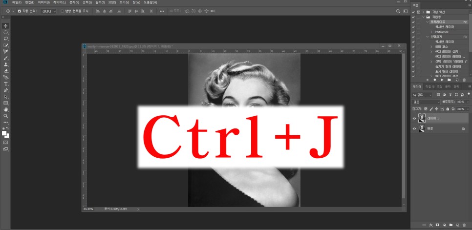 픽셀유동화를 포토샵에서 하기위해서는 일단 사진을 하나더 복사해서 하시는게 좋습니다.